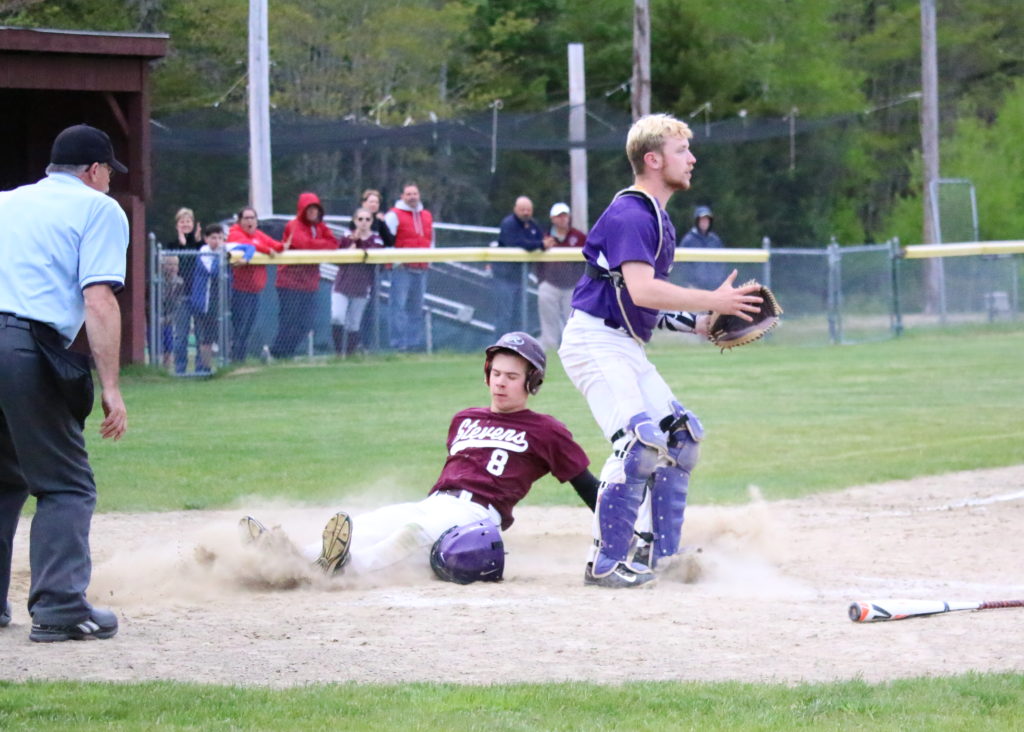 Blue Hill—Strong pitching and fast foot and glove work on the field kept the GSA-Bucksport score even at 0-0 on May 28 in Blue Hill through extra innings before George Stevens took the win 3-2. The win answered an earlier 2-6 loss to the Golden Bucks in their only previous meeting this season.