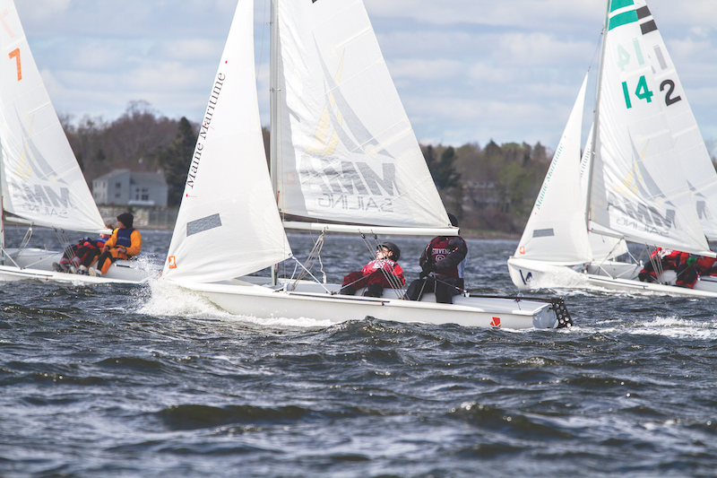 Sailors on the George Stevens Academy sailing team work together to navigate the waters during the Downeast Regatta on May 11-12 in Castine. Photo courtesy of Ryan Mitchell