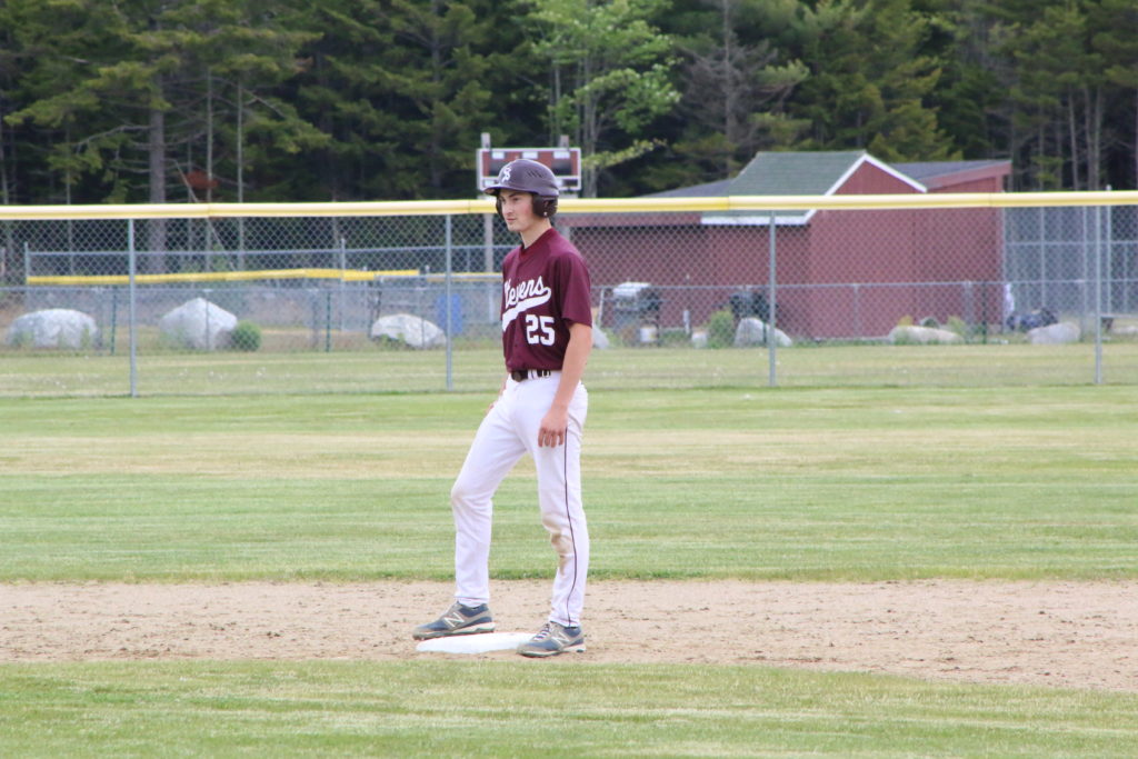 Blue Hill – With two outs left in the bottom of the sixth, and runners on first and third, junior Ben Parker stepped up to the plate in a tied, 0-0 Class C North quarterfinal game, against Bucksport pitcher Isaac Moore. After throwing two strikes down the pipe, Moore threw a ball into the dirt, which allowed sophomore Austin Snow to advance to second. Two pitches later, Parker cranked a shot to left center field, scoring two runs to give the No. 4 George Stevens Academy Eagles a 2-0 win on June 7.