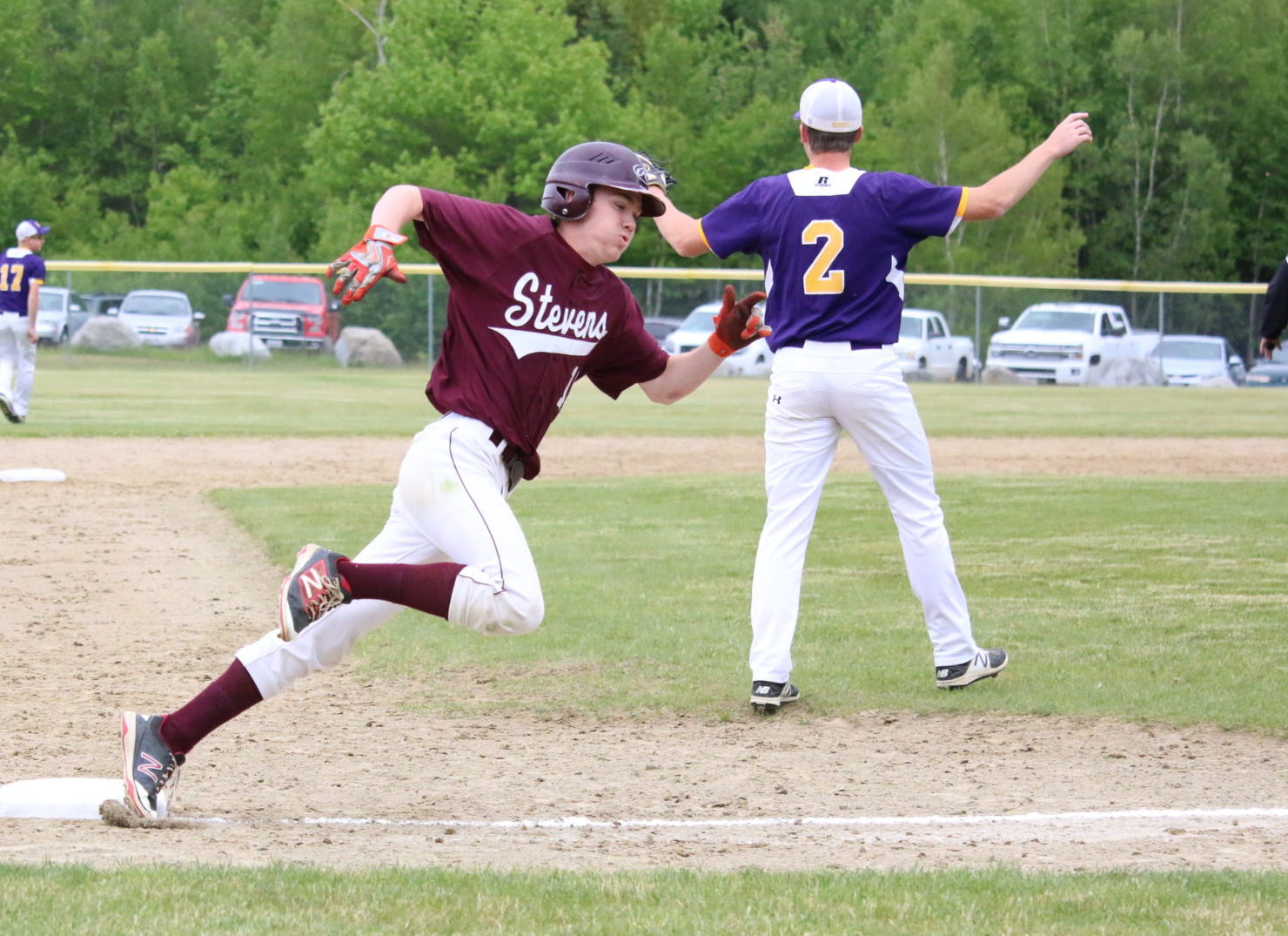 Junior Ethan Vinall takes a turn around third base. Photo by Anne Berleant