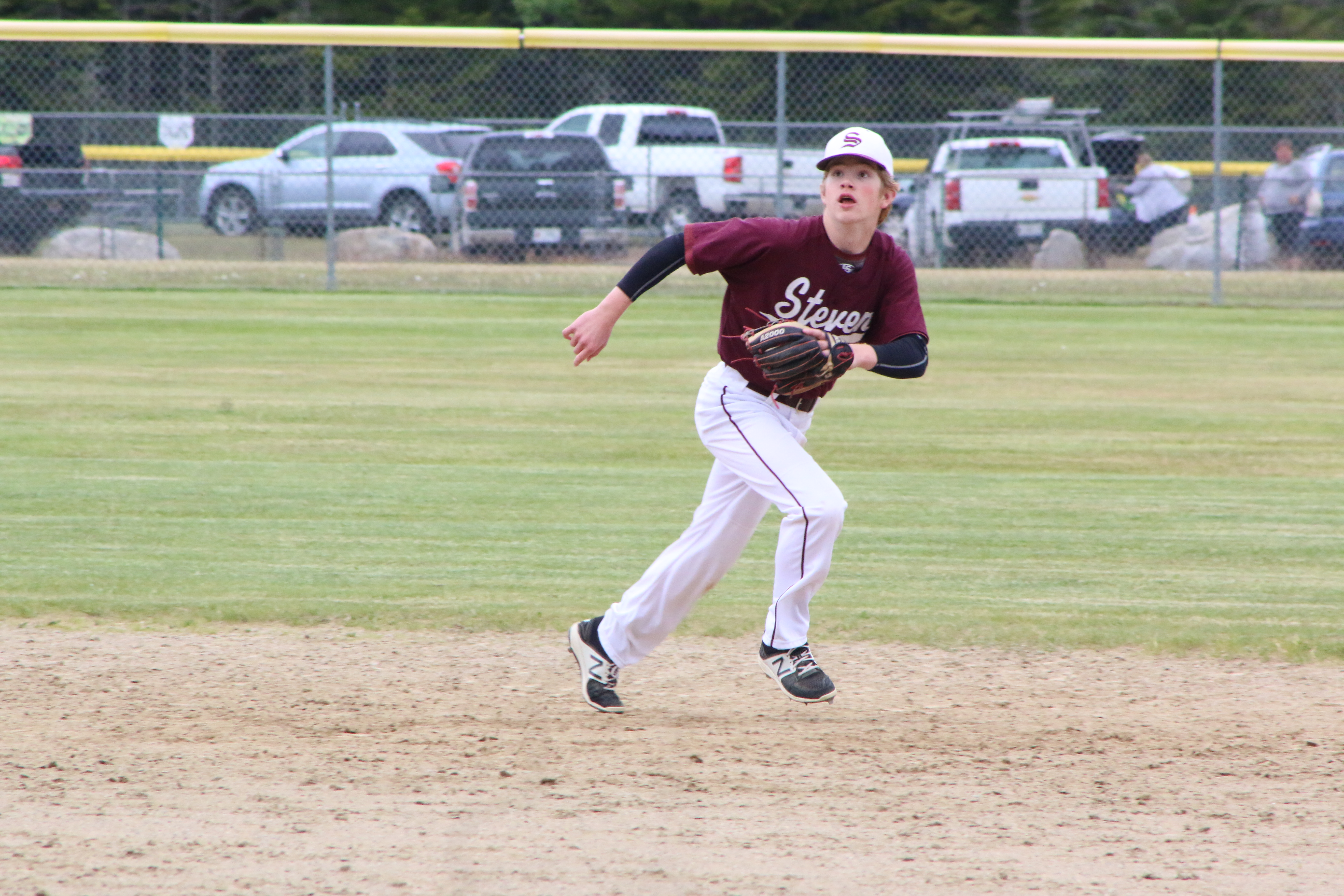 Sophomore Owen Vinall races to catch a pop fly. Photo by Anne Berleant