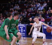 AUGUSTA – The George Stevens Academy basketball team is coming home with another gold ball. The Eagles beat out the Hall-Dale Bulldogs of Farmingdale 64-59 in the Class C state championship game Saturday, March 3 at the Augusta Civic Center for the team’s third consecutive state title. “Even when it …